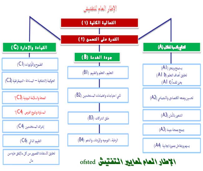 حيث يتم ذلك عن طريق عمليات التفتيش لكل من المعايير الأساسية والفرعية المحددة في الإطار العام للتفتيش وتحديد الأتي :